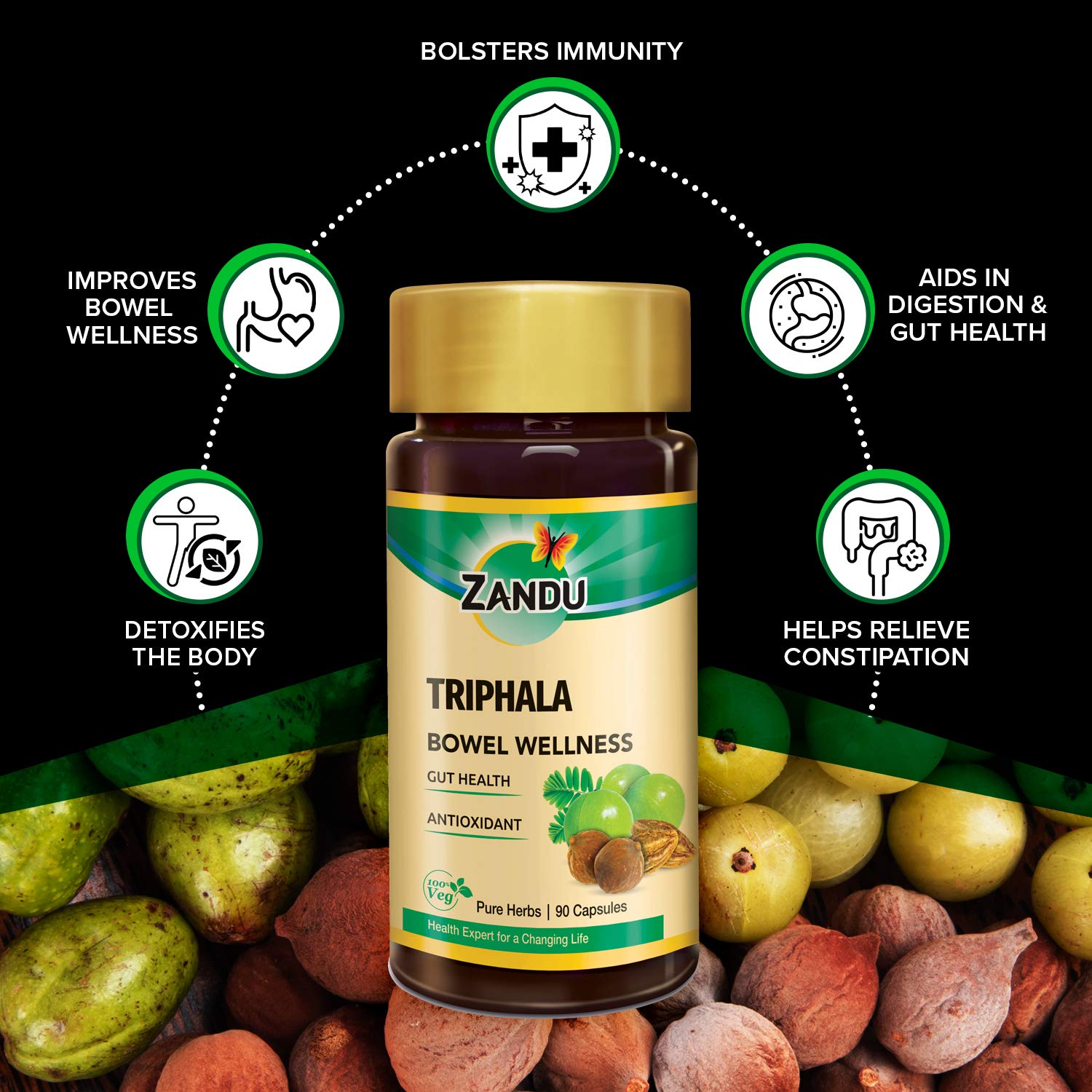 Zandu Triphala capsules are curated by Zandu with over 110 years of