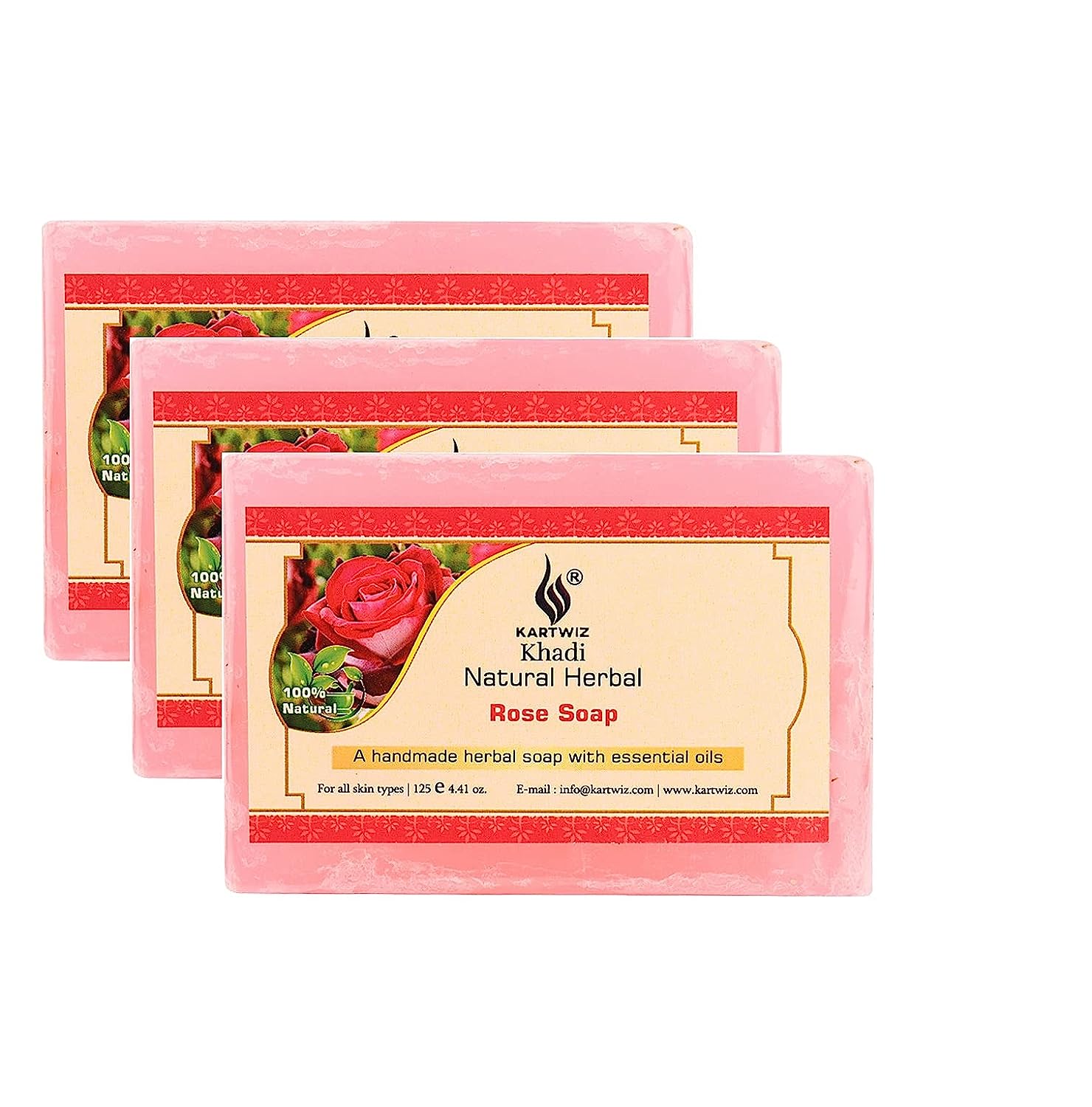 Khadi Rose Water Soap 125 gm (Pack of 3) by Parvati Gramodyog Herbal Products - Made in India