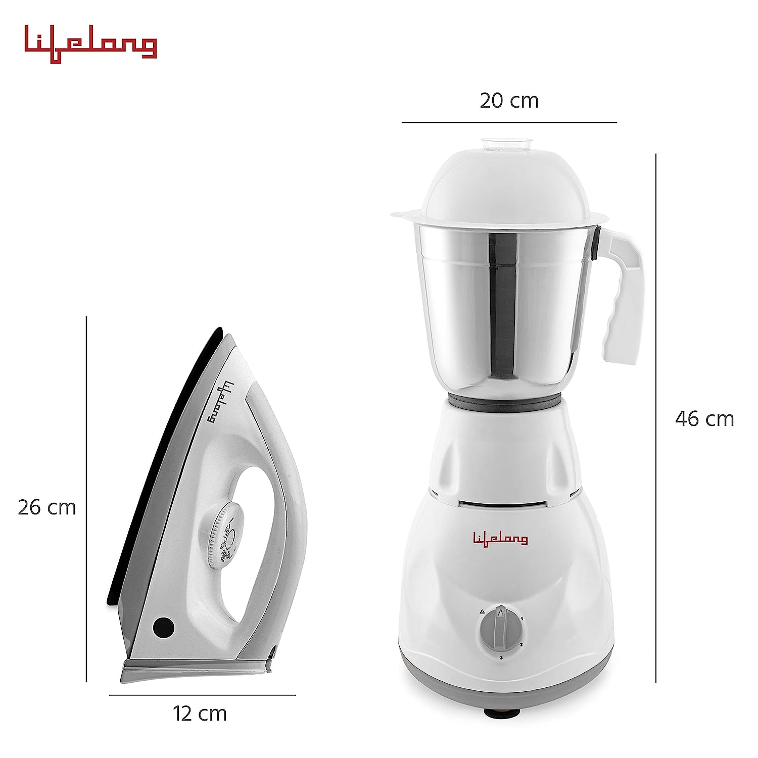 Lifelong Power - Pro 500 Watt 3 Jar Mixer Grinder with 3 Speed Control and 1100 Watt Dry Non-Stick soleplate Iron Super Combo (White and Grey, 1 Year Warranty)