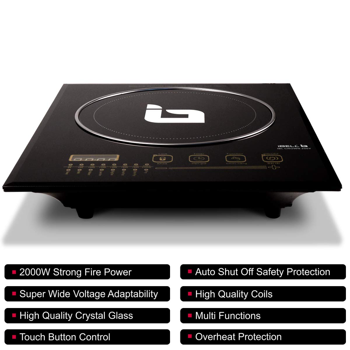 iBELL 200Y Premium Induction Cooktop Glass Top, 2000 Watt, Big Size, with Auto Shut Off and over Heat Protection (Black), 1 Burner
