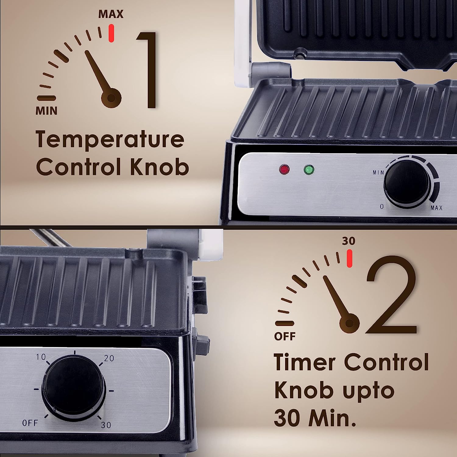 • 180° Flat openable plate, doubles up as an Open Grill, for all your grilling needs