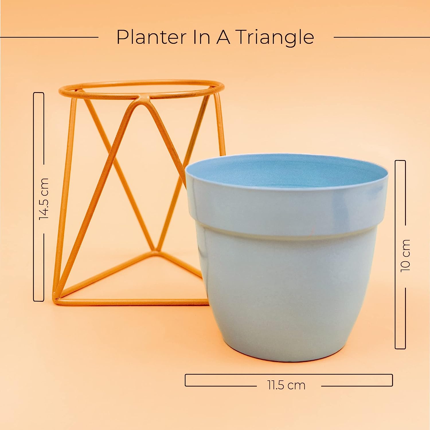 • EXCEPTIONAL DESIGN: The matte finish on the sky blue pot and the golden colour of the stand complement each other perfectly. The triangular structure of the stand has a distinct appearance. This pot can be placed in your home & office for an exquisite and classy look. It comes with a drainage hole to drain out excess water.