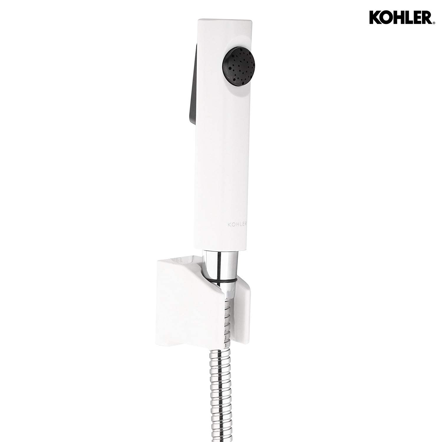 Kohler Cuff Health Faucet for Bathroom - White Body with Black Accents - Premium Jet Spray for Toilet with Hose and Holder - Superior Performance in Low Water Pressure - Easy Grip Design 98100IN-0
