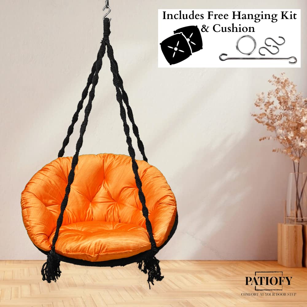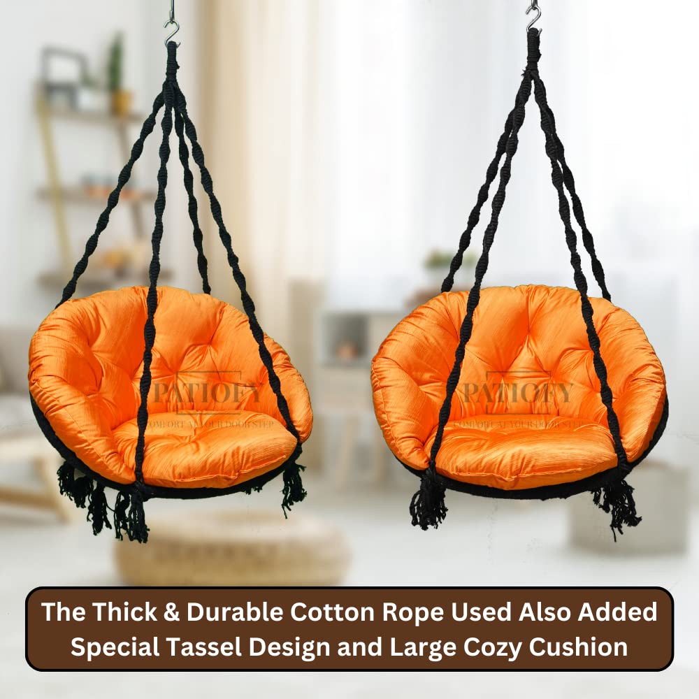 • PATIOFY Premium Cotton Swing Chair: This stylish swing chair with cushion is very cozy & durable. This swing chair is best for relaxing at home allows you to enjoy soft sponge comfort anytime & anywhere. This premium hanging jhula is the standard size & comfortable and it is big enough to have enough space to relax and stretch and enjoy full relaxation, something that other chairs can't do.