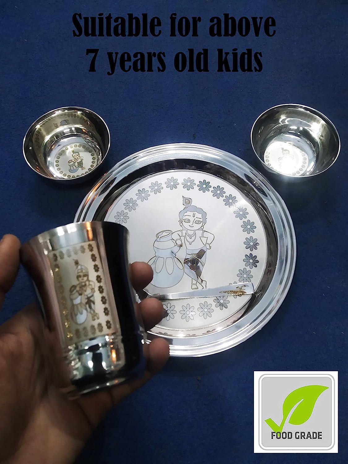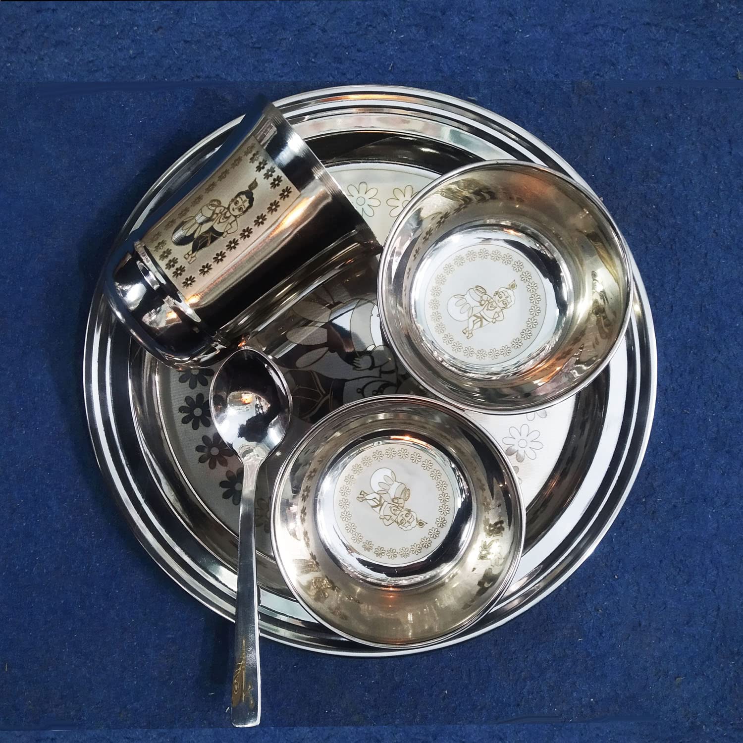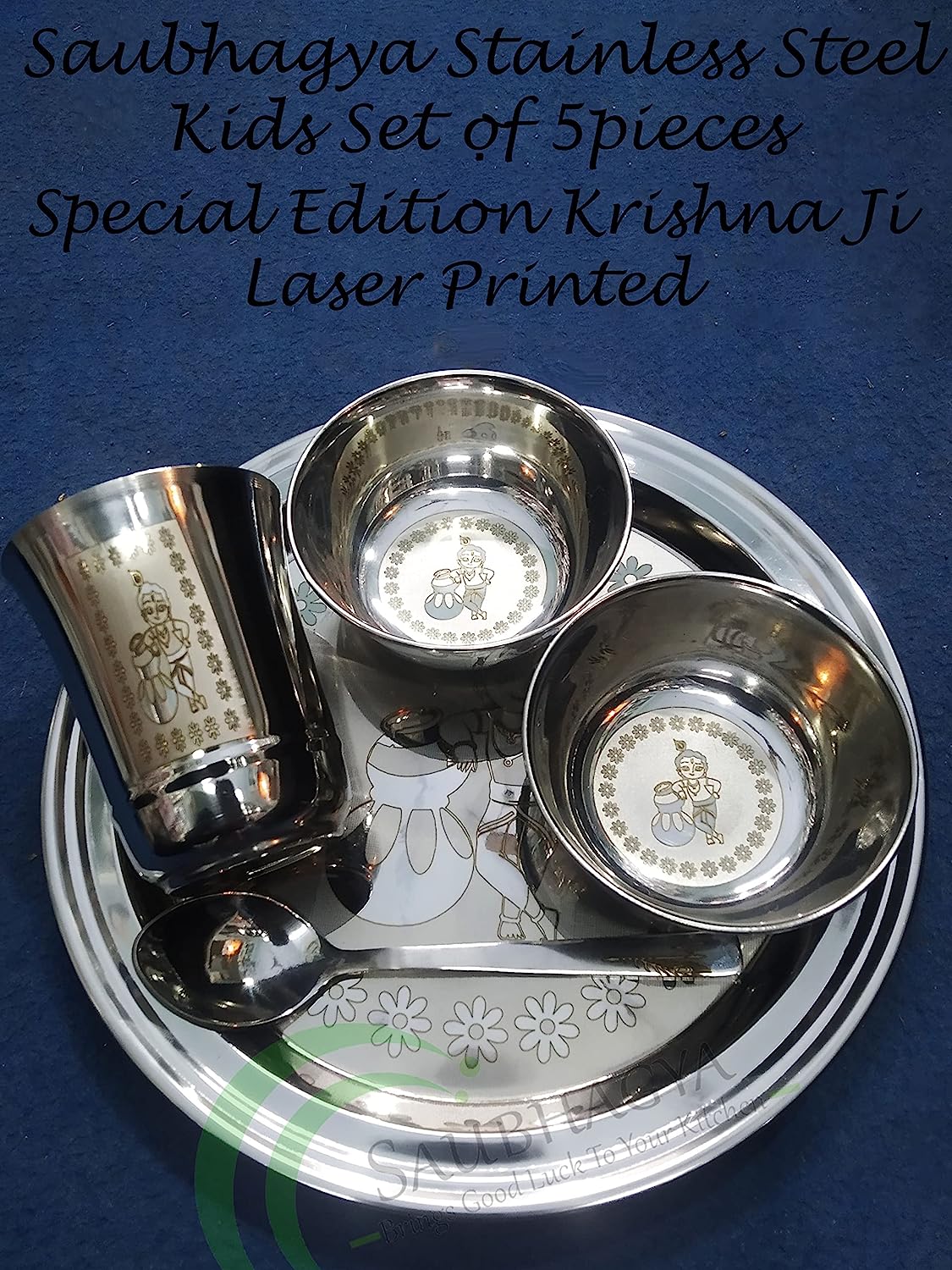 • ✔Saubhagya brings to you the safest and most fun option for feeding your kids. Saubhagya Premium Laddo Gopal (Indian Tradition) 5 pcs stainless steel dinner set is made from 100% food grade and high-quality stainless steel material.