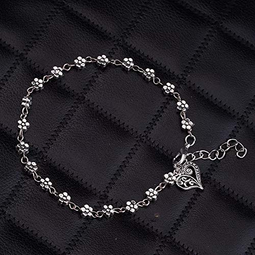 Shining Diva Fashion Oxidised Silver Floral Single Stylish Anklet for Women & Girls(Silver)(9575b)