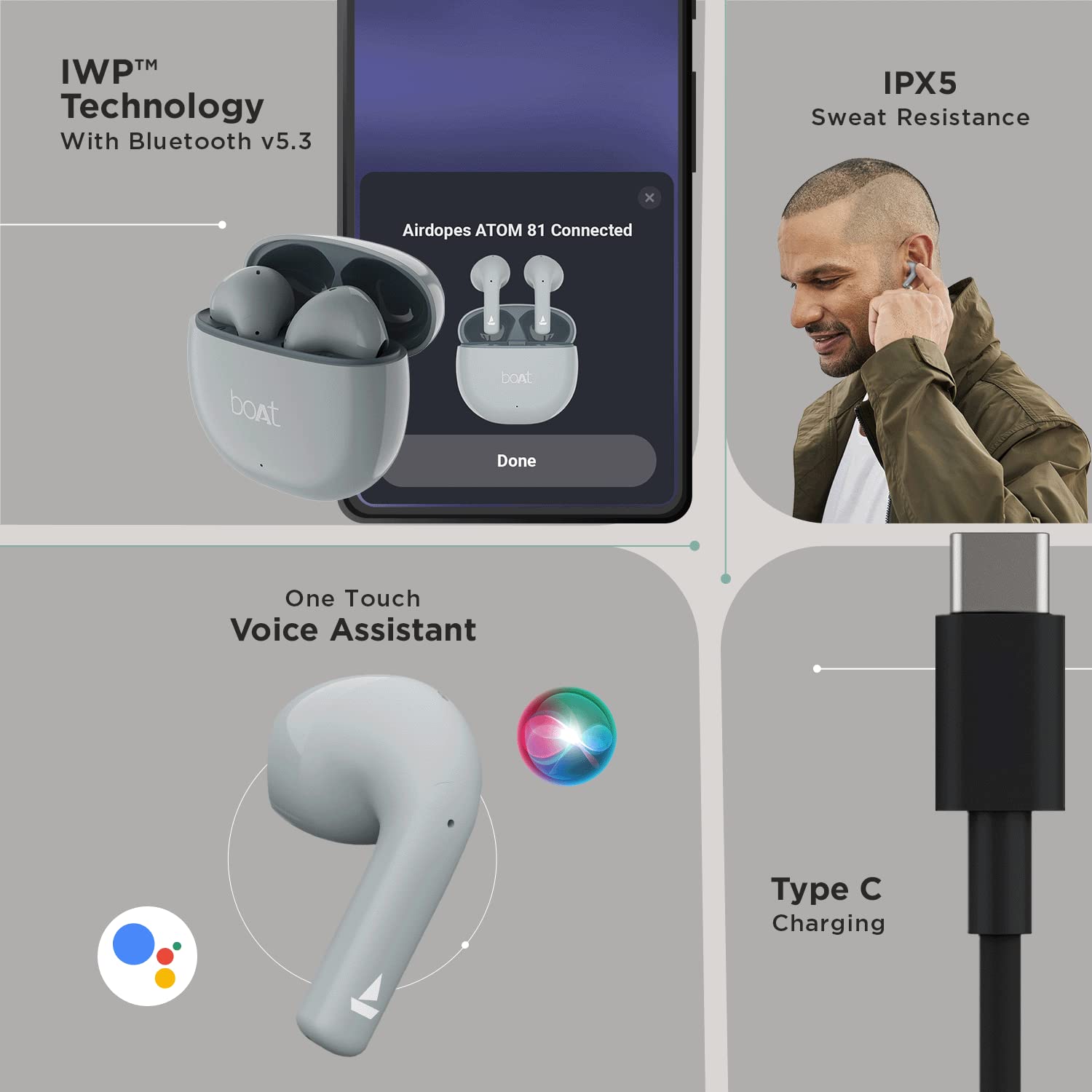 - Playback- Airdopes Atom 81 offer a total playtime of up to 50HRS, including up to 10HRS of playtime per earbud.