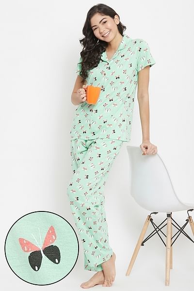 Mint green button down shirt & pyjama.