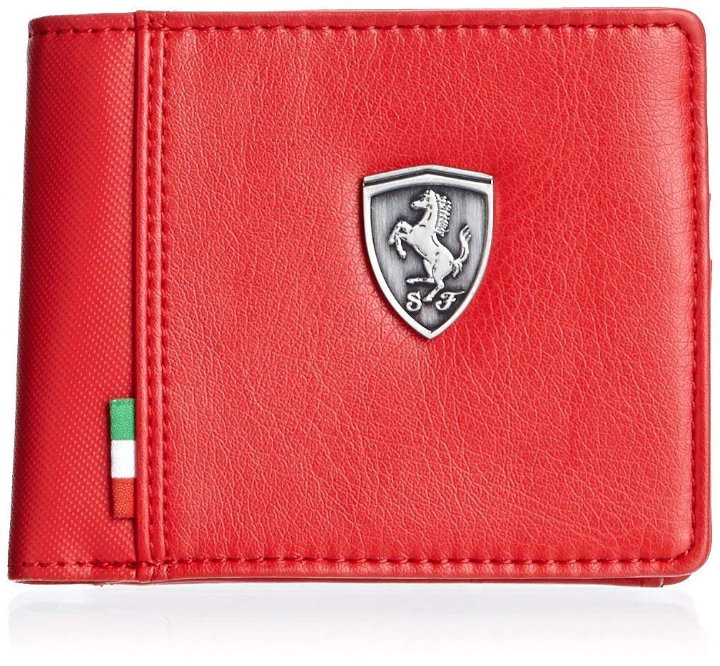 Lightweight Pu Leather Branded Ferrari RFID Blocking Leather Wallet for Men (Center - RED)