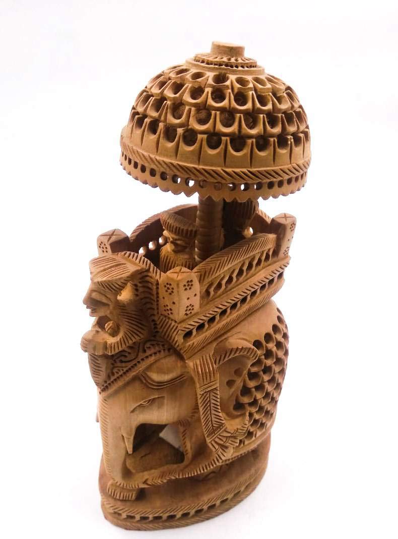 SHRI HANDICRAFTS 8" Wood Carving Handmade Ambabari Elephant Undercut Statue with Howdah Palanquin Animal Figurines Showpiece Gifts for Home Decoration,...
