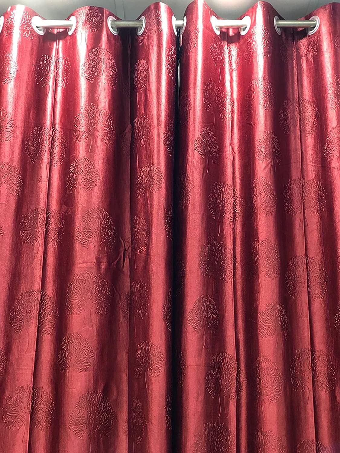 RIDHAAN Long Crush Fabric Tree Design Punching Curtain, 5 feet (Maroon) Set of 2 psc
