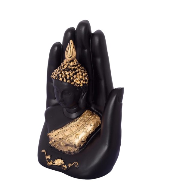 Product Description - Everyone wants perfect peace of mind that's free from ignorance, greed, hatred, and other afflictive states. Buddha has always been a great symbol of peace. So, what could be a better gift or a better option to bring home than the idol of Buddha? Adorning your home place with God's idols and figurines has been there for ages now and still would forever continue to be. Everyone wishes to hold God's idols in their home as it is said to bring positive energy and good vibes. And you can bring the same spirituality to your home with Faverdeal Black & Golden handcrafted palm Buddha decorative statue that comes in black and golden color. This showpiece is handcrafted intricately by our skilled artisans at the dwelling of Faverdeal using various inherited methods and is also a great gifting option for your family and friends.