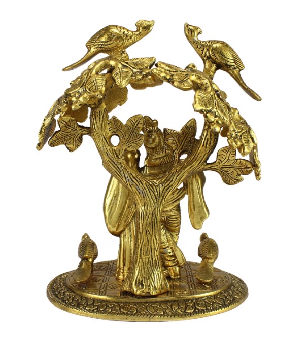 Golden Metal Radha Krishna Statue Standing under Tree