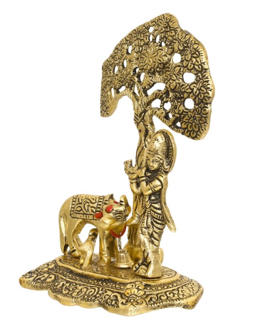 Product Description - Embellish your home with our golden & brown Lord Krishna playing the flute under the tree with a cow & calf showpiece that arrives in golden and brown color, and will showcase Indian culture when kept in your living room. The space in your room can be filled with our amazingly crafted and elegant figurines. These make it the best gift option for your friends and family, especially during festivals and religious celebrations. These are handcrafted by our diligent artists at Faverdeal. You can find many more god idols and figurines in different avatars on our online portal in various colors that suit your home or office interior. It serves as a great gift, especially around religious celebrations and festivities. This handicraft has been made by skilled artisans from the house of Faverdeal using various traditional techniques.