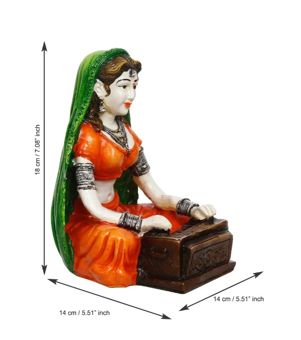 Package Content - One 7 Inch Rajasthani Lady Playing Harmonium Handcrafted Decorative Polyresin Showpiece