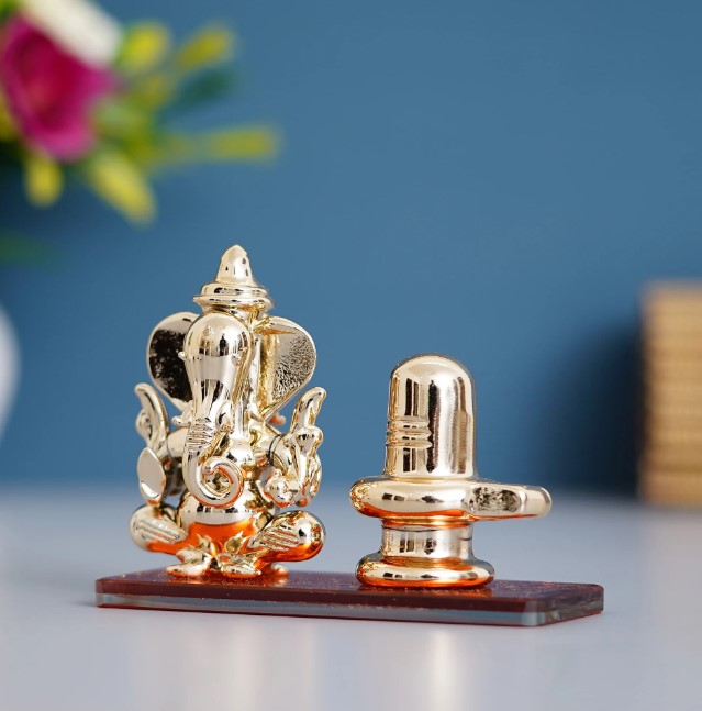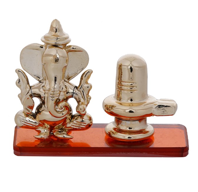 Package Content - One Orange Lord Ganesha with Shivling Crystal Statue for Home and Car Dashboard