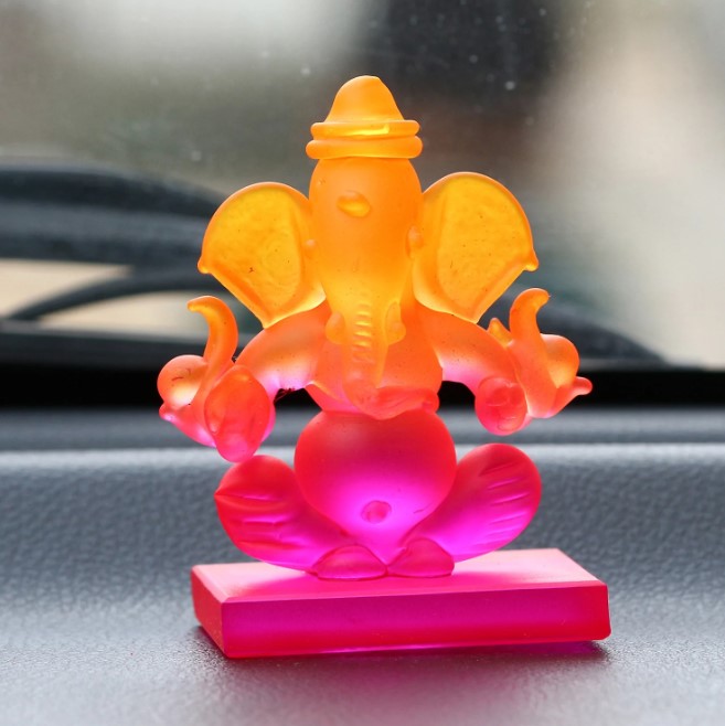 Package Content - One Pink and Orange Double Sided Crystal Car Ganesha Showpiece