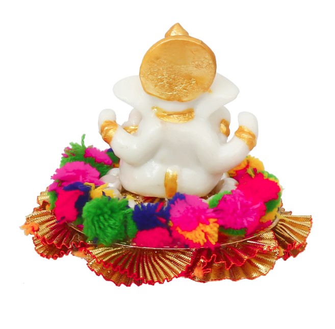 Package Content - One Lord Ganesha Idol on Decorative Handcrafted Plate for Home and Car