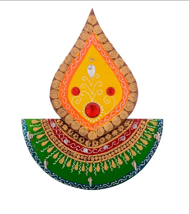 Product Description - Place your keys on this beautiful Papier-Mache Embossed Tilak Design Key holder. The key holder has 5 hooks for your house, car, garage and other keys. The key knobs have been carefully designed to hold your keys. This key holder can be hung at any place in your house to keep keys secured and can also be used as a wall decoration piece. It serves as a great gift, especially around religious celebrations and festivities. Each Key Holder has been diligently handcrafted by skilled artisans from the house of using various traditional techniques.