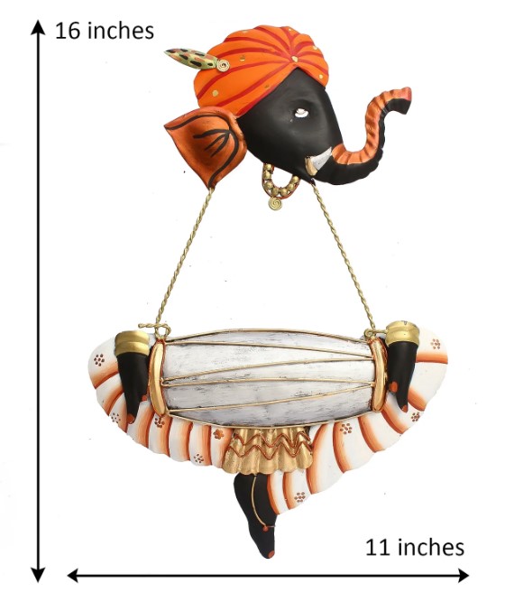 Product Description - Lord Ganesha has a close tie with music– it is said that all the rhythms in the universe are channeled through him, which is why there are always images and figurines depicting him with a musical instrument. You would have seen figurines where you see Ganesha playing a tabla or shehnai, but how many times would you have seen him playing the dholak? With our Orange, Silver & Black iron Lord Ganesha playing dholak wall hanging, you can see his semi-form playing the dholak with aplomb– although there is no torso to this Ganesha, the detailing is intricate and impressive! Exquisitely designed and intricately crafted, it makes for a perfect gifting option for friends & family. You can find many more wall hangings in different patterns on our online portal in various colors that suit your home or office interior.