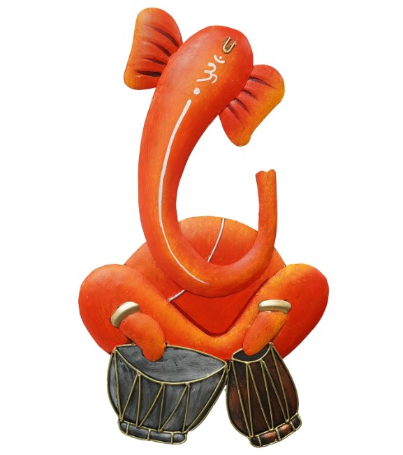 Product Description - Enlighten your home with Musician Lord Ganesha playing Dholak Handcrafted Iron Wall Hanging which reflects the artistic brilliance and adds elegance to your decor. Style your home and office with this Iron wall hanging; sure to be admired by your guests. It serves as a great gift, especially around religious celebrations and festivities. This handicraft has been made by skilled artisans from the house of using various traditional techniques.