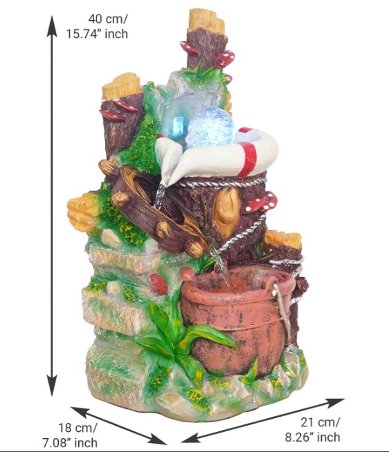 Package Content - One 2 Steps Attractive Multicolor Well & Bucket Design Water Fountain with Multicolor LED Light & Rotating Crystal Ball