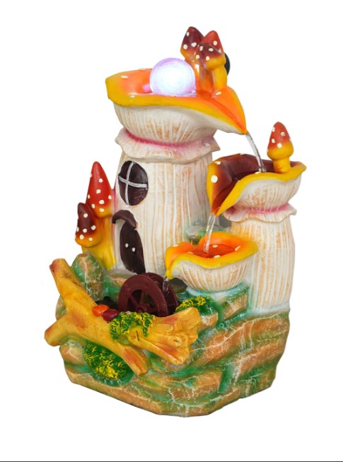 Package Content - One 3 Steps Beautiful multicolor Mushrooms Garden Water Fountain with Multicolor LED Light & Rotating Crystal Ball