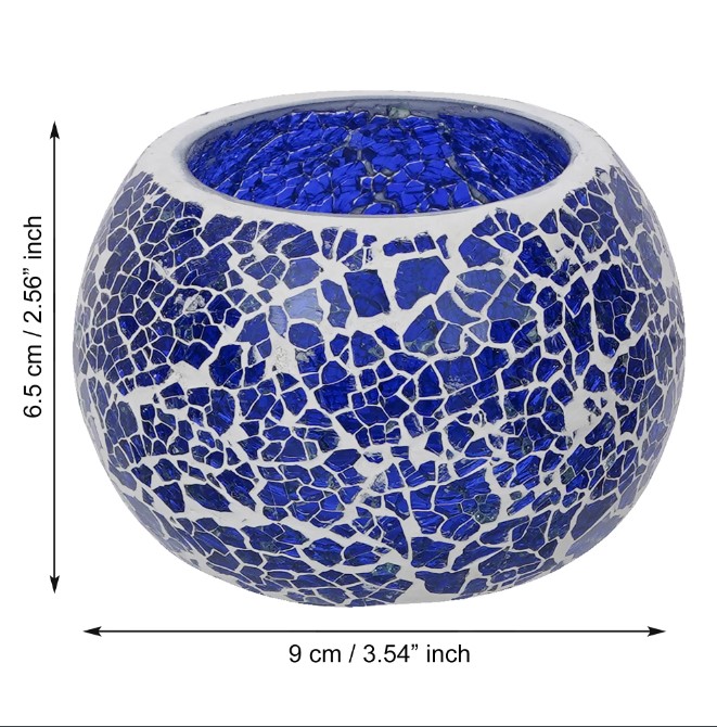 | Package Content - | Blue Mosiac Glass Decorative Tea Light Holder/diya |