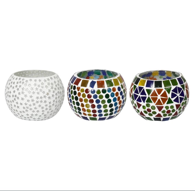 Package Content - One Set of 3 Mosaic Glass Decorative Tea Light Holder/Diya