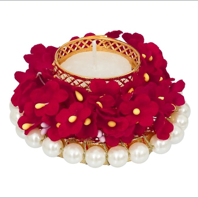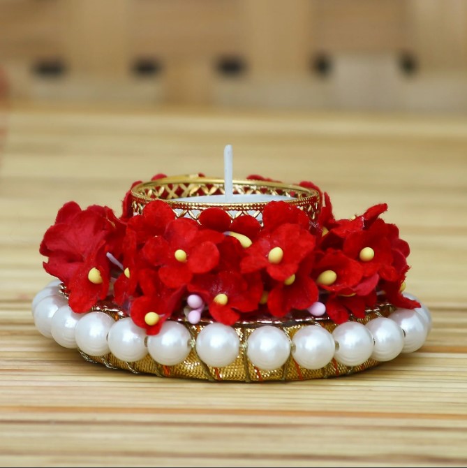 Package Content - One Floral and Stone Work Design Handcrafted Tea Light Holder