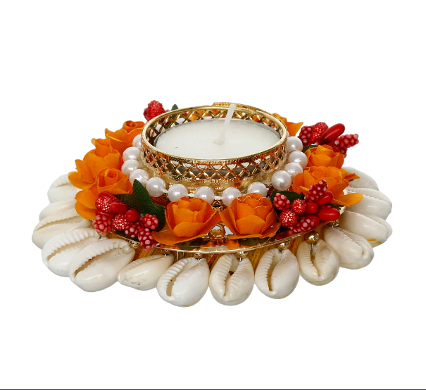 Package Content - One Shells and Floral Handcrafted Round Tea Light Holder