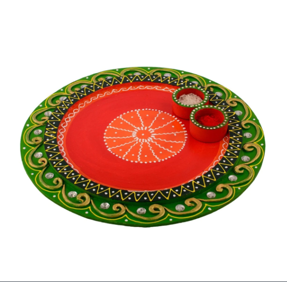 Product Description - Papier-Mache Round Multiutility Pooja Thali is one of the finest quality item from the house of due to its various decorative features. The offered thali is fabricated using precious quality colors and other raw materials. This pooja thali can be used in various religious ceremonies like House Warming, Diwali Pooja, kirtan, marriages etc. For its incredible appeal, it serves as an ideal gift for your loved ones, family and friends during festive season. This pooja thali is diligently handcrafted by skilled artisans from the house of using various traditional techniques.