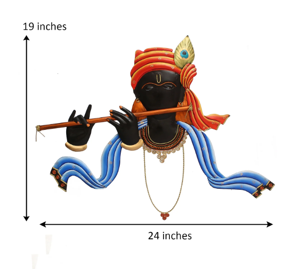 Product Description - Lord Krishna playing his flute– an image that many of us have grown up with, but now you can own a new avatar of the same image to hang in your home. Made using iron, this Orange, Blue & Black Lord Krishna playing flute wall hanging has been crafted by talented artisans from our country and has the kind of finesse and perfection that comes from several years of experience and practice. Traditional colors and motifs, such as Krishna’s quintessential peacock feather have been brought to life in this wall hanging, which will look great in your home and the homes of your loved ones! Exquisitely designed and intricately crafted, it makes for a perfect gifting option for friends & family. You can find many more wall hangings in different patterns on our online portal in various colors that suit your home or office interior.