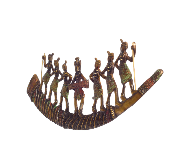 Product Description - Imagine sitting in some remote part of India, where there are folk tribes that still thrive and you are invited to their celebrations and festivities. A lone drummer creates music that has all others dancing to the beat. Decorative wall pieces enhance your home space very much as they add a different element altogether. This Tribal Folk Dancers on Shehnai Premium Brass Wall Hanging that comes in brown color reflects the artistic brilliance and adds a different vibe to your room. This wall hanging stands as a great gifting option when it comes to religious events for your friends and family. This handicraft has been made by skilled artisans from the house of using various traditional techniques. You can find many such wall hangings on our online portal.