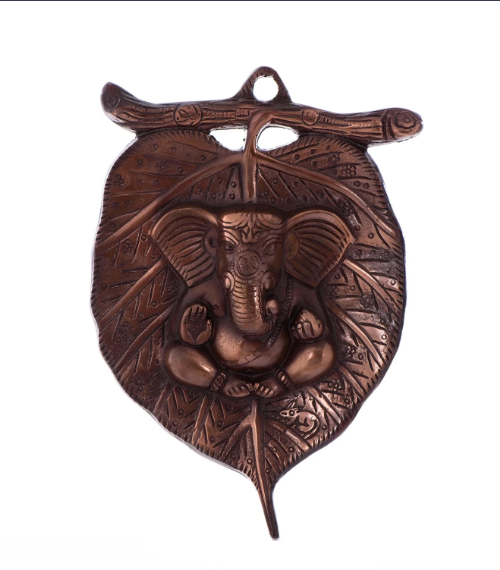 Product Description - Beautiful Brown Lord Ganesha on leaf wall hanging from will bring a divine serenity to your home decor. It is crafted from Metal which ensures an ethnic look as well as durability. This art piece surely grabs attention in your living room. It serves as a great gift, especially around religious celebrations and festivities. Each wall hanging is diligently handcrafted by skilled artisans from the house of using various traditional techniques. Exquisitely designed and intricately crafted, it makes for a perfect gifting option. You can find many more wall hangings in different patterns on our online portal in various colors that suit your home or office interior.