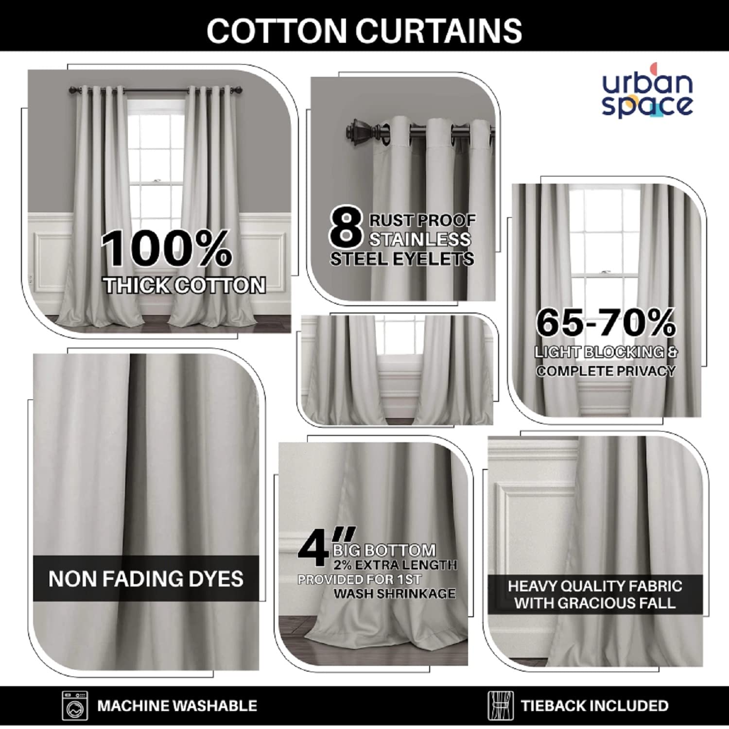 • COTTON CURTAIN :- Our Premium Linen cotton fabric Curtains block only 65-80% light creating vibrance and positivity in the room. The rustic matte surface finish of cotton avoids the cheap shiny satin polyester look. These bestseller curtains are generously sized, catch less dust, hang elegantly and wash easily | Add your house a classic and sophisticated touch, thus you can easily blend these with your existing home décor.