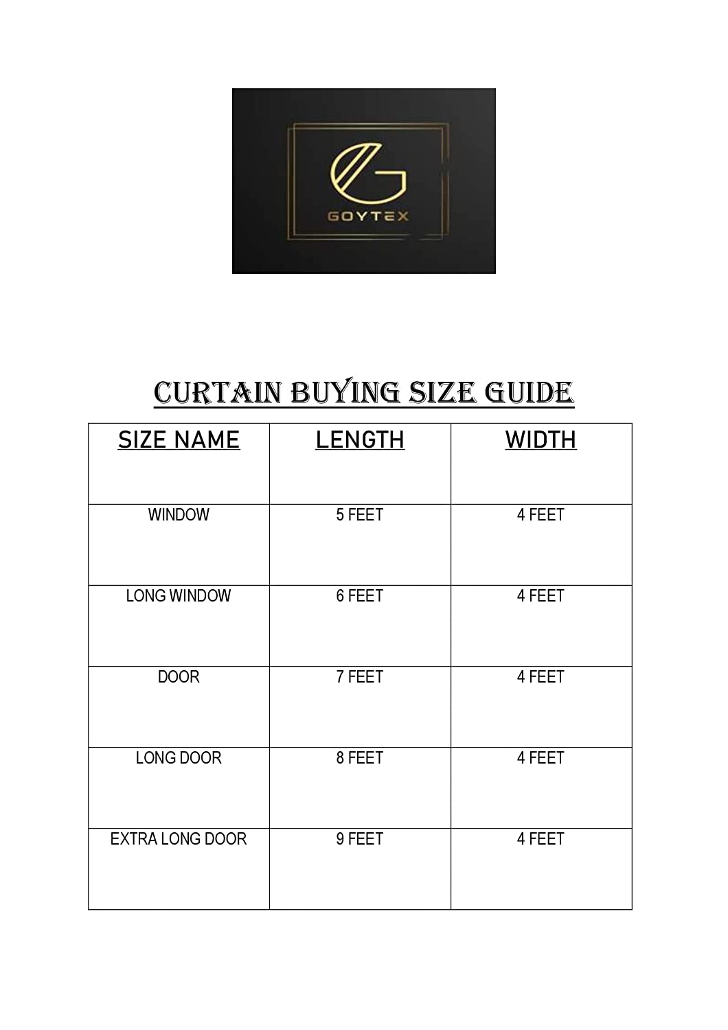 Special FeatureLIGHT-FILTERING & ELEGANT STYLE :Does not block 100% sunlight. Moderately cuts outside light to give a gentle glow in the room, and provides privacy as is not see-through from outside in the night. Stitched with high-quality 8 Grommets (eyelets) for smooth movement on the curtain rod. The 1" panel at the bottom provides a good drape., WHY GOYTEX CURTAINS? : Our premium curtains create vibrance and positivity in the room. These bestseller curtains are generously sized, catch less dust, hang elegantly on curtain rod with back loops, wash easily in the machine and are priced 50% less compared to stores., Elegant Design : Bold and attractive, this lovely curtains panel showcases a casual and classic pattern, vintage appeal that will enhance the appearance of any room space., Suitability : Suitable for Kids Room, Living Room, Study Room, Bed Room, PERFECT SIZING , GENEROUS WIDTH & EASY CARE MATERIAL : The width of each panel is 4 feet which is more than those available in the market. Our polyester cloth is strong and lasts long. Machine wash with normal detergent in cold water and tumble dry to easily remove any stains. Do not bleach or run through a hot dryer. Colours have been tested for fastness. See more