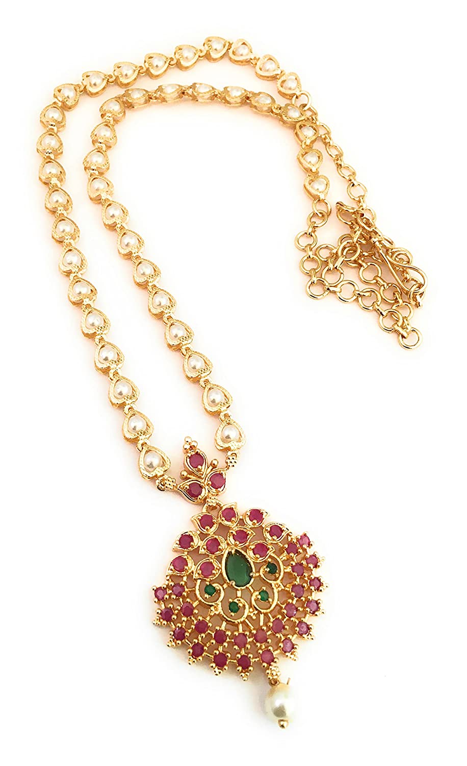 - PACKAGE CONTENT - Micro Gold Plated 24 Inches Pearl Chain Pendant; BASE MATERIAL TYPE - Made from brass material this Gold Plated Necklace assures to remain in their original glory even after years of usage. Grab them now.