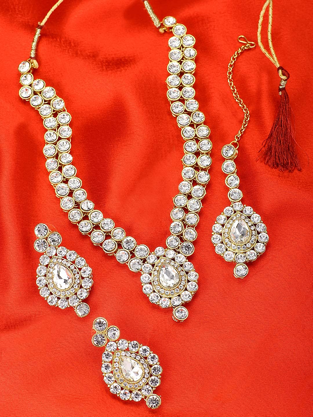 - Graceful and flawless: give yourself that beautiful look and make others jealous with our traditional necklace set. It has a high quality imitation kundan stone along with unique pearl look like which gives it an edge over other earrings. This is a one of a kind design which will go with all types of dresses