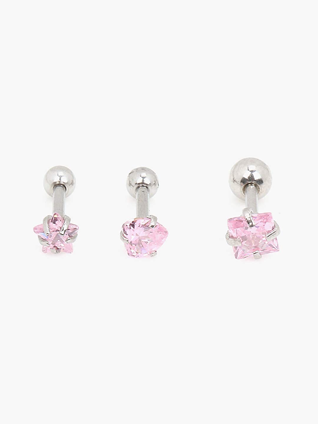 | Collection | Combo Of 3 Pairs Stylish Pink Cubic Zirconia Geometric Shaped Stud |
