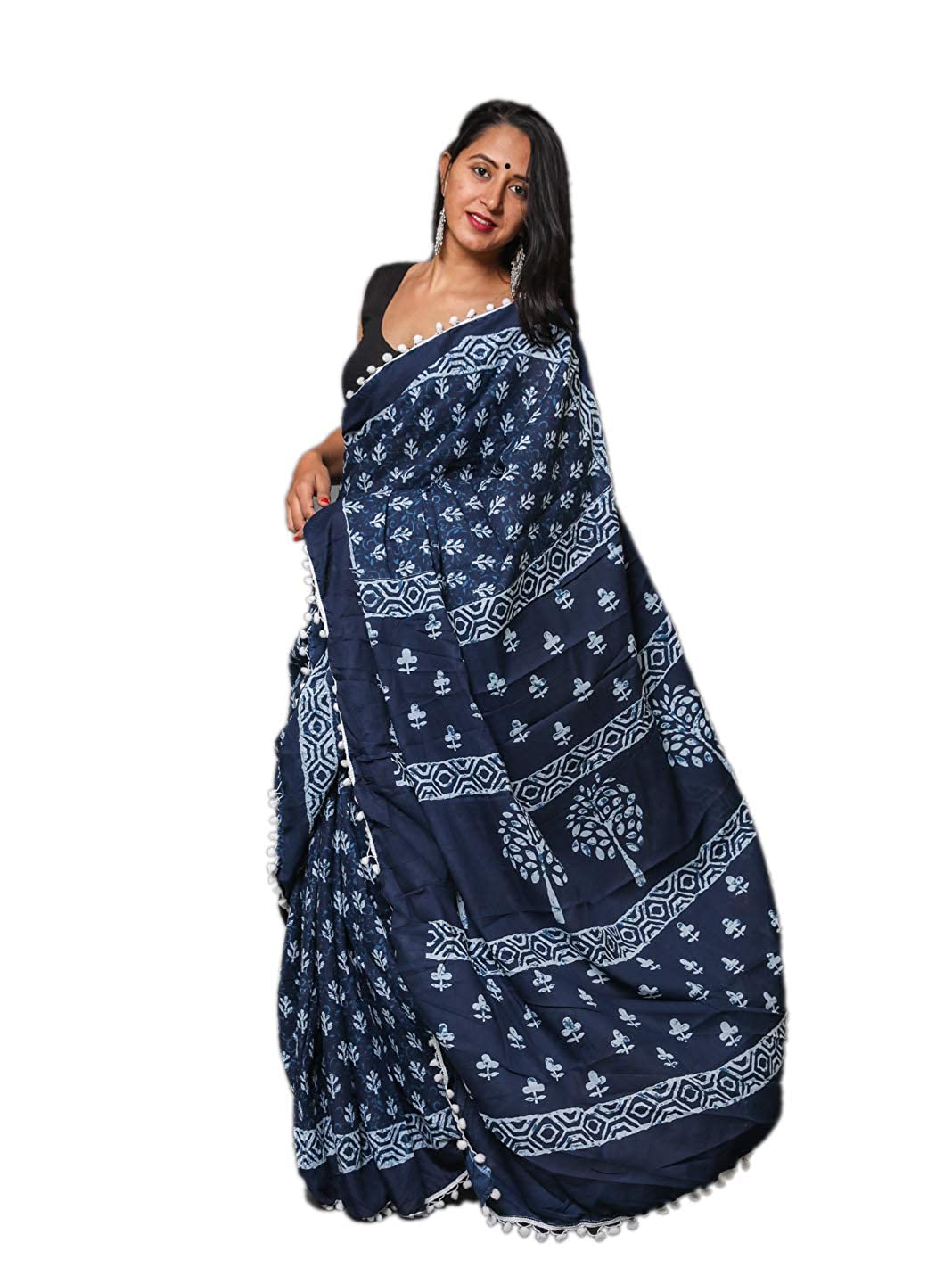 - FABRIC : Mulmul Cotton saree with similar fabric Blouse pc || Work: Printed ,Block print ,Traditional Ethnic Look