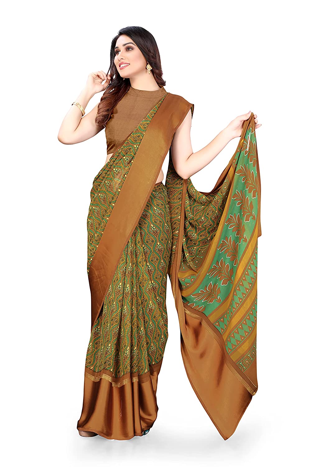 • Color :: Saree - Brown, Green | Blouse - Brown