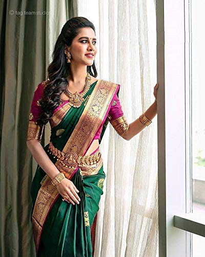 - Fabric Deatils-: Silk Saree And Blouse Made With Golden Weaving Zari Thread Borders , zalar (TASSELS) not available
