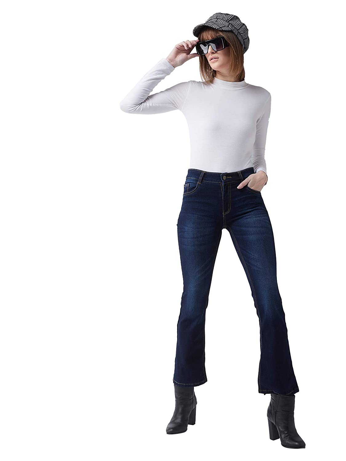 Women's Blue Bootcut Mid Rise Regular Length Stretchable Denim Jeans