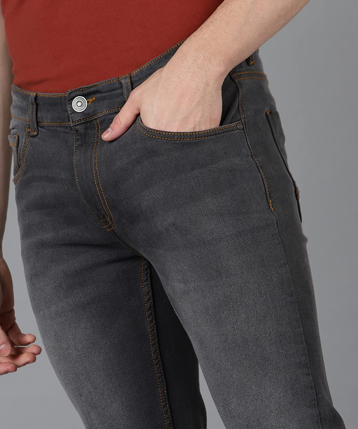 Men's Grey Slim Fit Washed Jeans Stretchable