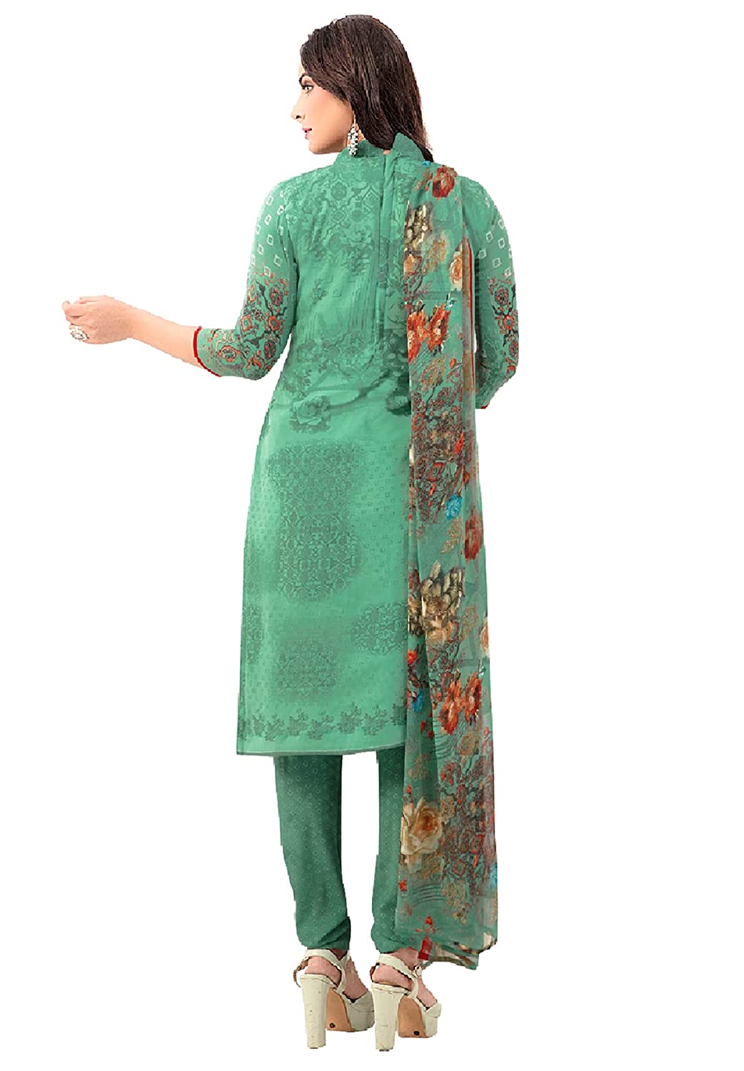 Women's Pista Green & Red Synthetic Printed Unstitch Dress Material with Dupatta-OM-0065327