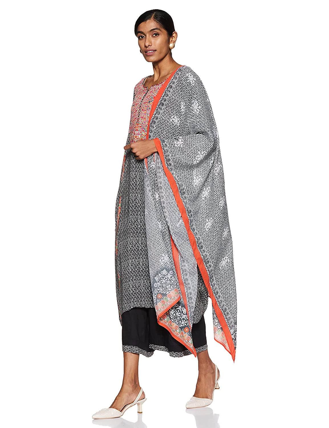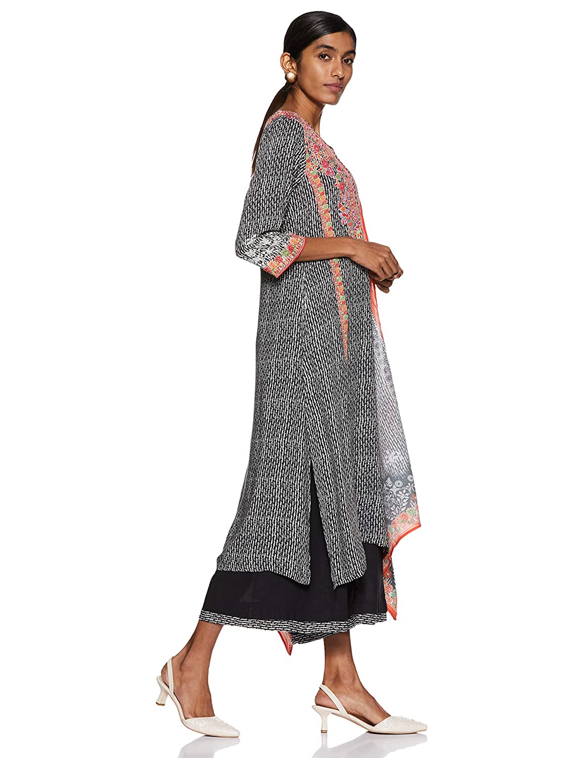 • Glam up your daily look with this black suit-set by Biba; It is one from our launch; The set combines a straight cut kurta with flared palazzo pants and dupatta