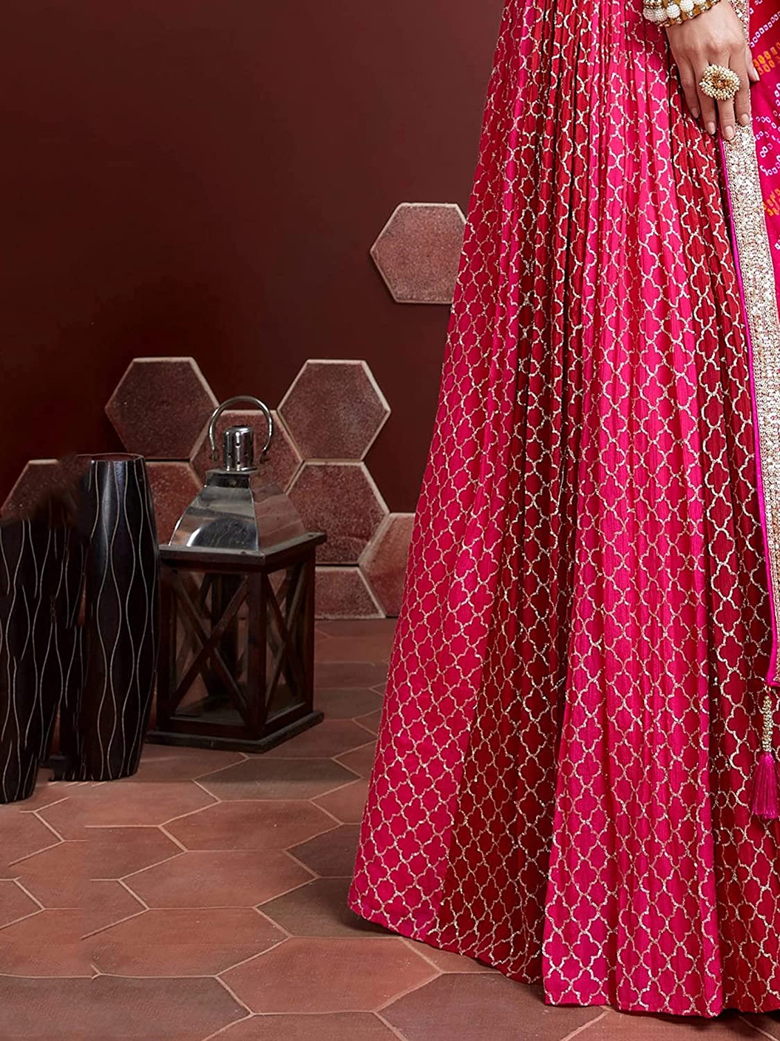 - Lehenga Fabric: Chinnon Silk; Blouse Fabric: Banglori Silk; Dupatta: Chinnon Silk; Inner: Santoon with Cancan(tulle) layered net