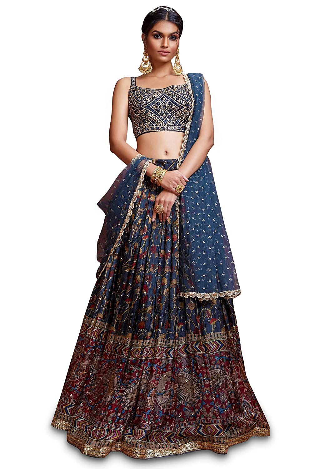 - Measurements: Lehenga(Semi-Stitched) Flair : 3.50mtr, waist-43", height-43"; Blouse(Unstitched) Size: up to 44"; Dupatta Length: 2.25 mtr