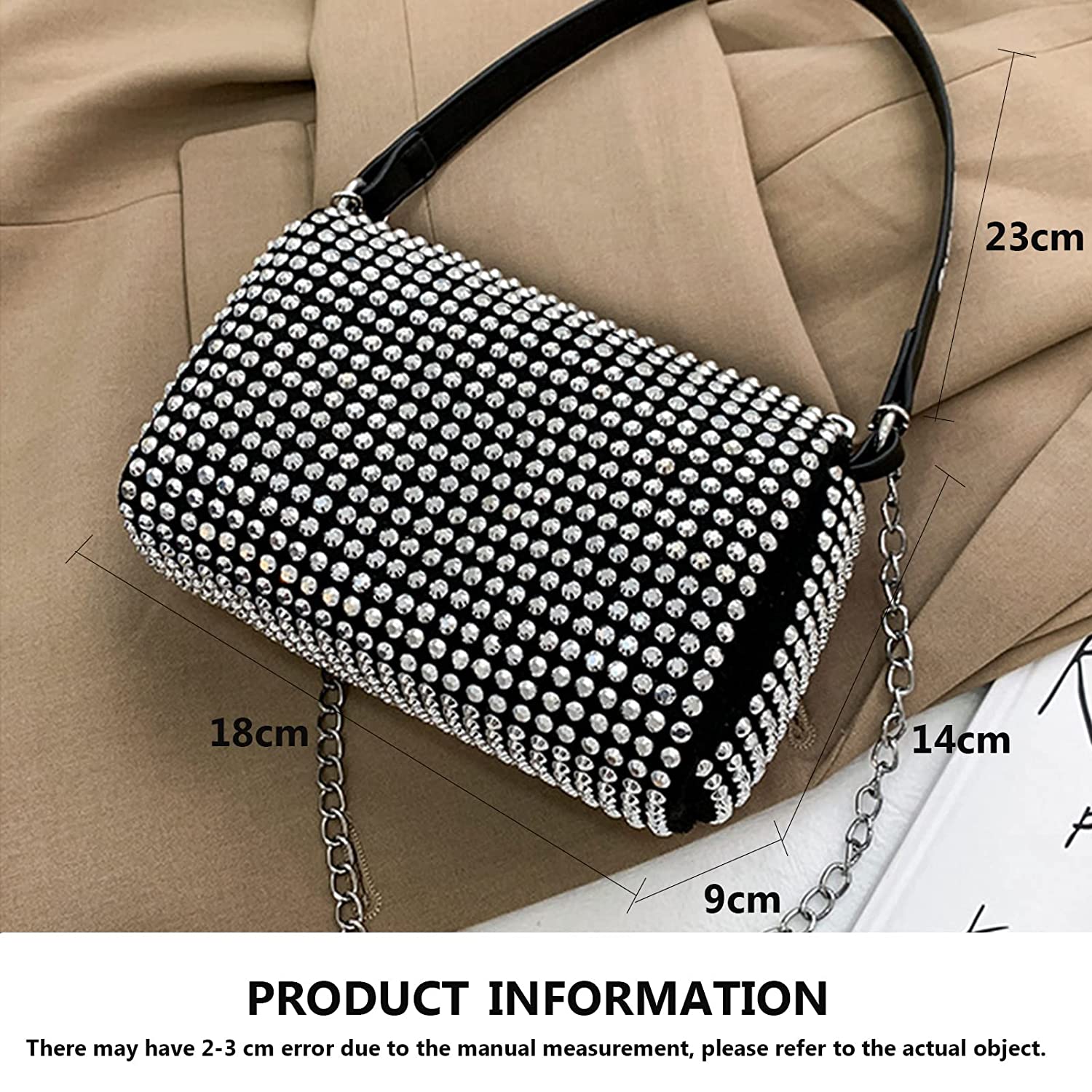 - ????Stylish:the body is inlaid with rhinestones This sparkling style evening clutch purse will add a subtle glow to your evening attire. It always makes you charming and shining, no matter where you are..
